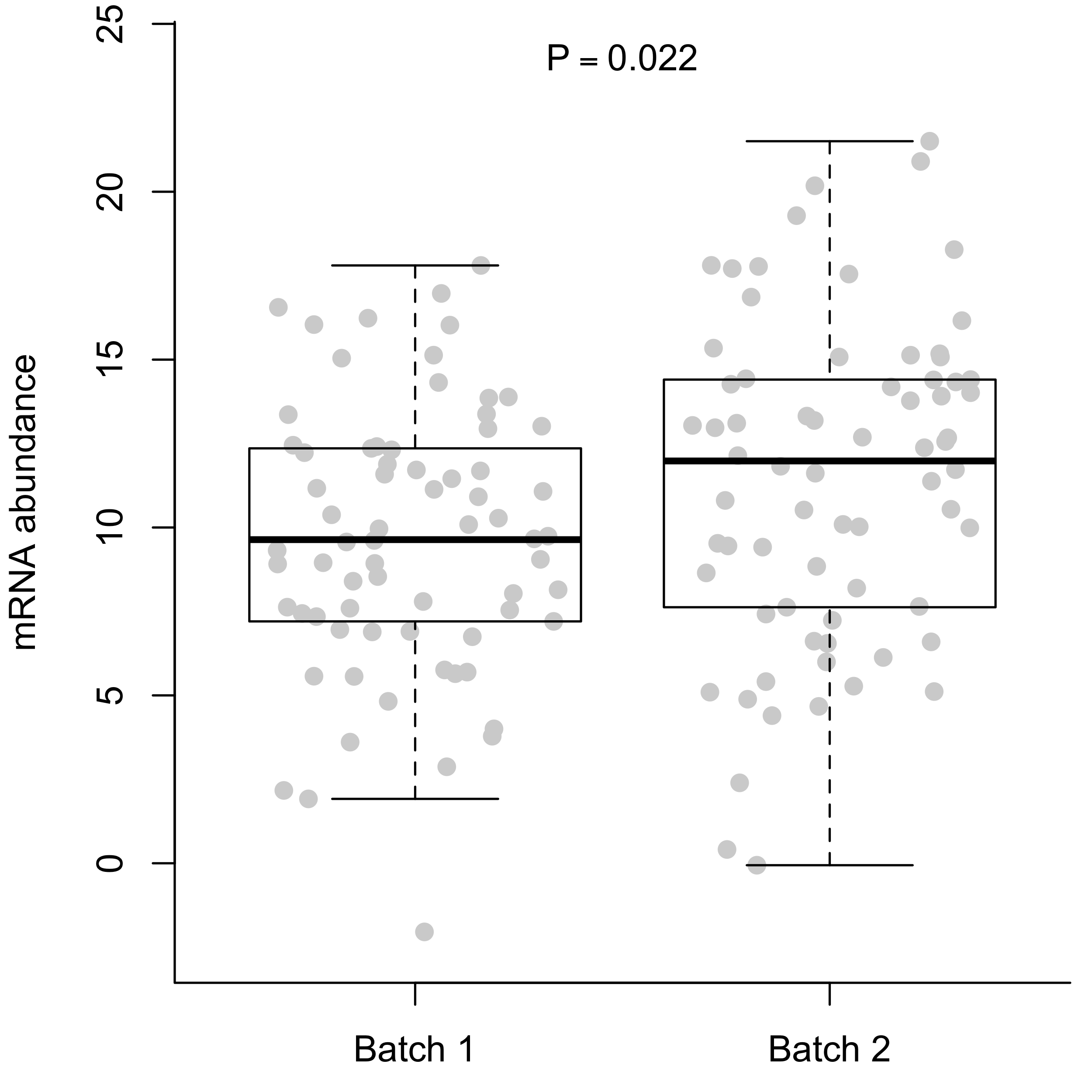 At the single gene level, a batch effect might look like a slight difference in the average expression.